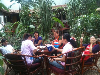 I was and still am being helped by every single person here. As I sat to write this earlier on, Tia, the head chef, hugged me. She is usually very reserved. She just said “ I am really sorry Julieta. I like you very much. You go home and get better then come back to Mut Mee.” My eyes fill with tears. Tears that do not stop. Joy comes to hug me too. Then Wii blows magic spell. So does Yong. Then Kung and Pook. “Keep your window open and shout we do everything for you.” I cry some more. Then Om says she will pack all my things for me and take to the post office since I cannot carry anything in this flight. Then Nick offers to come with me to Bangkok to put me on the plane with my luggage. “It is too much Nick” “I would not offer if I did not want to do it.” So my eyes have more and more tears. Yesterday when I thought it was nothing and kept working I had already gotten help from the whole of guesthouse. Guests and staff.